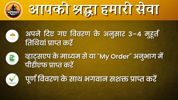 जानकारी के रूप में आपको शुभ दिनांक, तिथि, वार, नक्षत्र, और समय उपलब्ध कराया जाएगा।