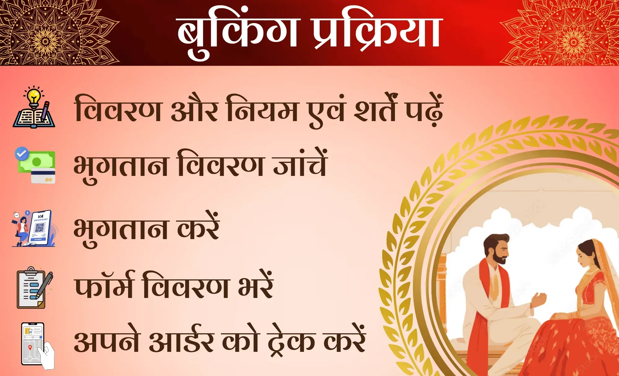 इस सेवा के तहत, आपको शुभ दिनांक, तिथि, वार, नक्षत्र, और समय की जानकारी उपलब्ध कराई जाएगी, ताकि आपका विवाह शुभ मुहूर्त में संपन्न हो सके।