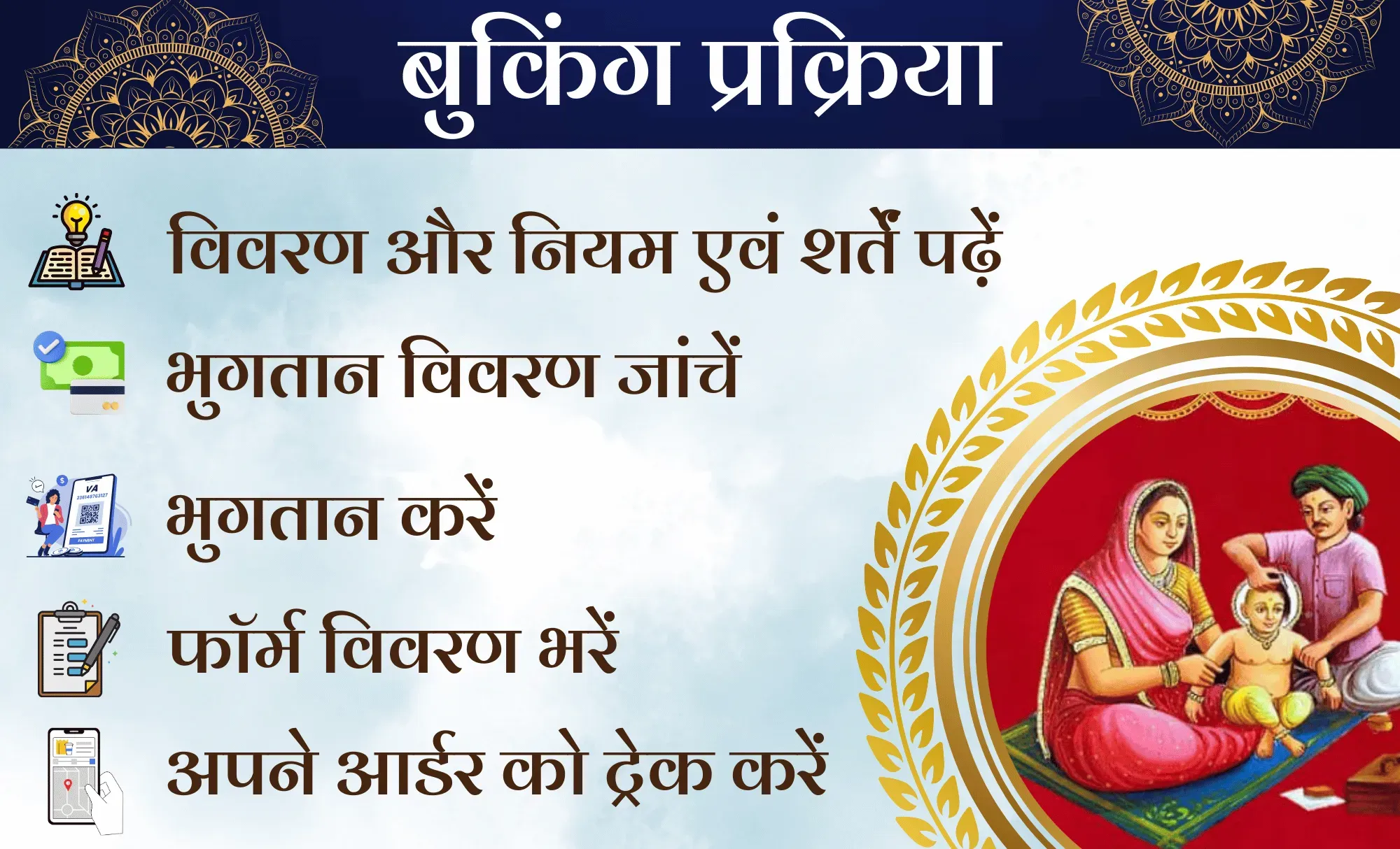 इस सेवा के तहत, आपको शुभ दिनांक, तिथि, वार, नक्षत्र, और समय की जानकारी उपलब्ध कराई जाएगी, ताकि आपके बच्चे का मुंडन शुभ मुहूर्त में संपन्न हो सके।